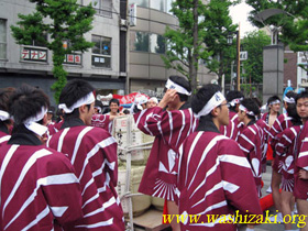 子供が傘鉾にくぐると健康に恵まれるそうです。 |