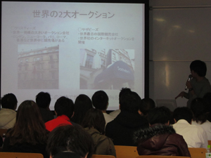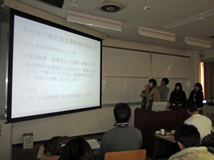 「芸術と経済」…一見すると全く違い,反対の位置にある分野同士の関係性,および相互の影響について,斬新な切り口から迫った報告。とりわけ,①アートマーケットと②美術館経営の2点にケースを絞って議論を展開しました。